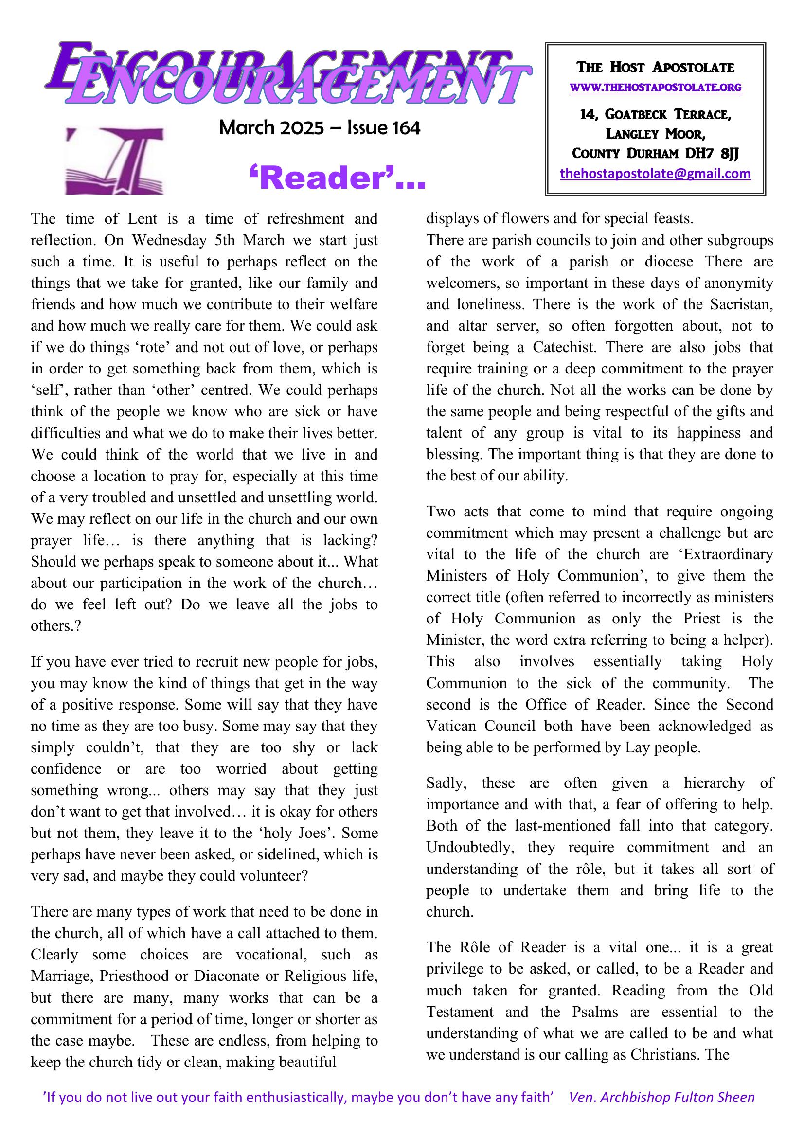 Monthly Encouragement: