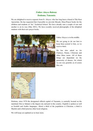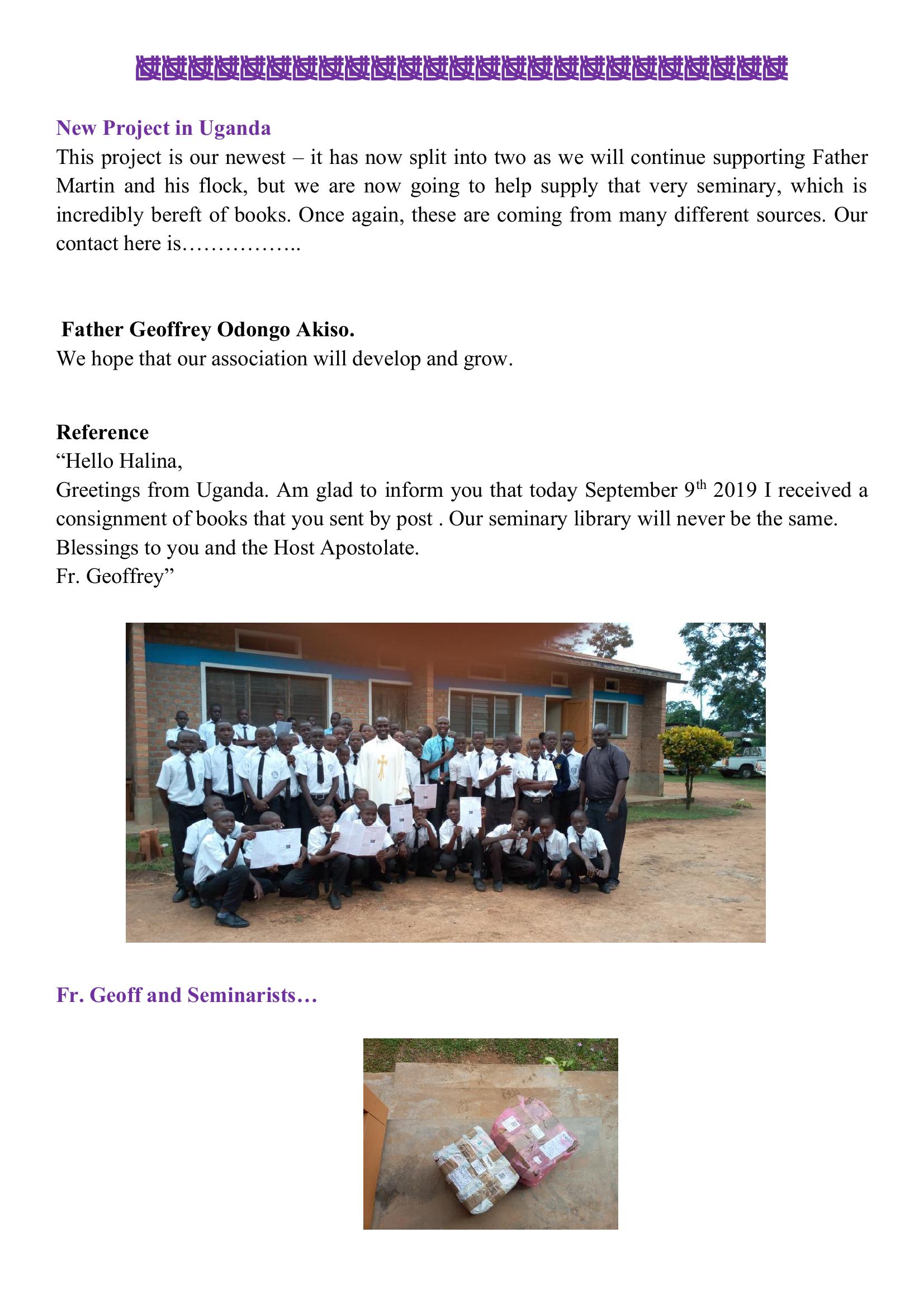 Items needed for distribution to The Host Apostolate Projects - For the Seminaries (Uganda, Nigeria)