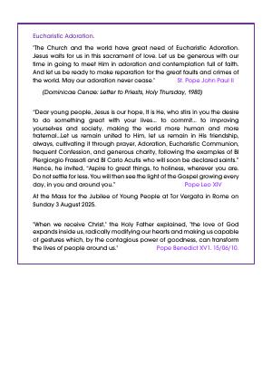 "Adoration is to enter into profound heartfelt communion with The Lord, who makes Himself bodily